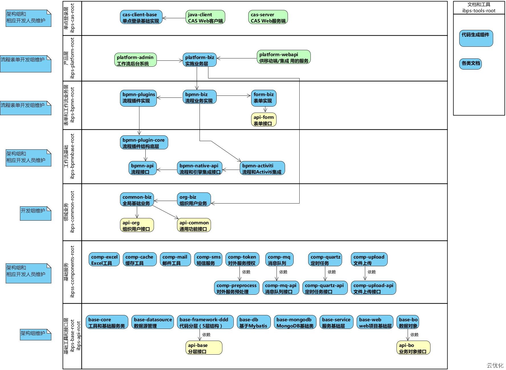 以I-BPS作为基础开发平台,结合平台流程、表单、组织架构、代码生成等核心功能,持续实现需求开发及功能迭代。